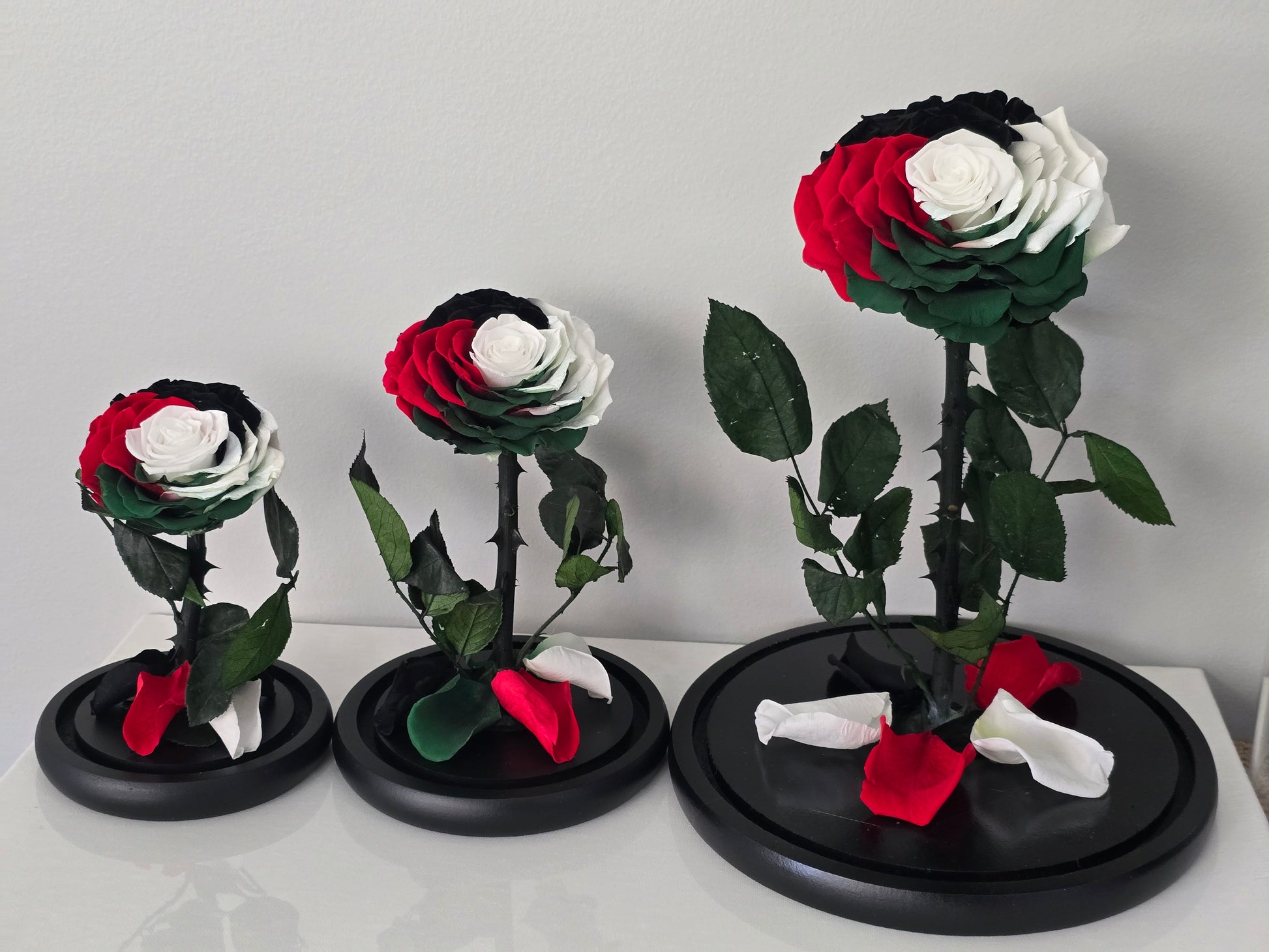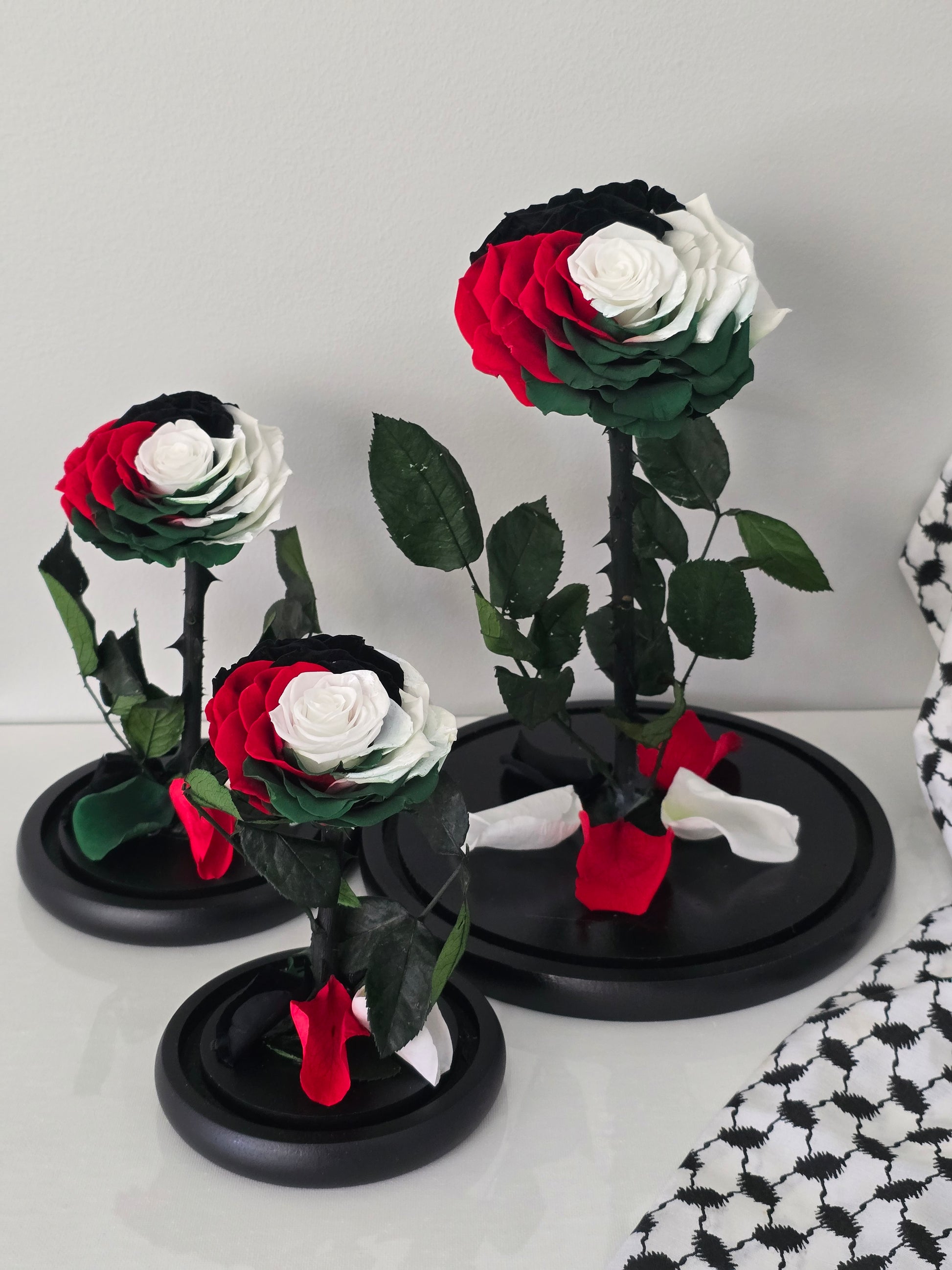 Exclusive to Deluxe Rose Co is this collection of limited edition Rose Domes that are the colours of the Palestinian flag.